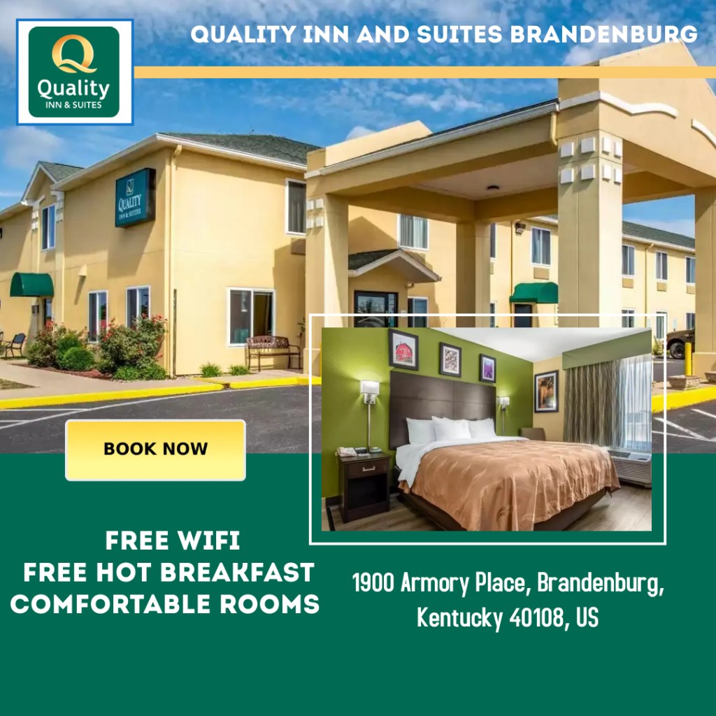 Enjoy a variety of amenities and friendly service when you stay at the Quality Inn & Suites® hotel in Brandenburg, KY. This hotel is conveniently located along the Ohio River, just south of the Indiana border and just under an hour to downtown Louisville. Get the travel essentials you’d expect from a hotel brand you can trust. Start your day with a free, tasty hot breakfast. Stay connected with free high-speed WiFi throughout the hotel, and get some work done in our fully-equipped business center.